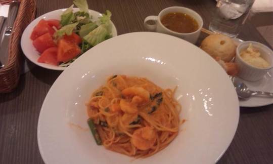 当院より徒歩1分にある「neut」でランチをしました。初めて入りましたが、店内は広くオシャレで、女性客が多くいました。それもそのはず。こちらはランチビュッフェで、メインを選んだら、前菜・バン・デザートが食べ放題でフリードリングも付いているんですよ!ラタトゥイユなど、凝った前菜が10種食べ放題!どれも美味しくて、ついつい食べ過ぎてしまいました。もちろんメインのエビのクリームパスタも美味しかったですよ。待たずに入れましたし、おすすめです!